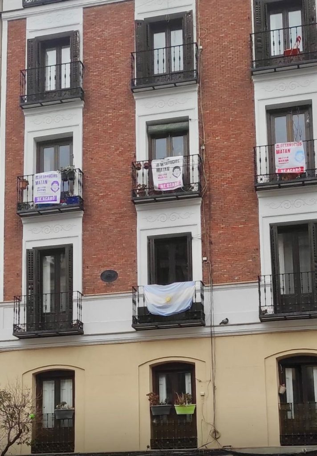Más de 100 balcones de Lavapiés recuerdan a las vecinas desahuciadas en el marco de la celebración del 8M