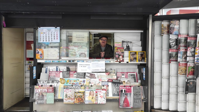 «Al día puedo vender 30 periódicos y la jornada en la que despacho además 4 revistas puedo darme por satisfecho. Hago recargas de móviles, he vendido tabaco y lotería… Pero esto es ya insostenible y, además, llevo más de 40 años trabajando y estoy cansado. Desde la pandemia la cosa ha ido muy rápidamente a peor y eso que en el quiosco se puede vender de casi todo: cafés, bebidas, souvenirs, bolsos, gafas, artículos de regalo y se pueden recoger paquetes. Sin embargo, ya no he querido meterme en nada más», explica Aurelio, quien desde que se quedó solo al frente del negocio, en 2011, dice no haber faltado ni sábados ni domingos ni festivos a su lugar de trabajo, haciendo notar lo esclava que es un profesión en la que ha visto a su padre echar jornadas de 6 de la mañana a 22 horas.