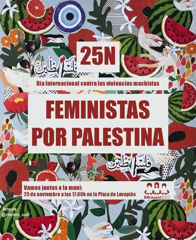 Por otra parte, en esa misma manifestación del sábado serán miembros del 8M Lavapiés las que asuman el Bloque por Palestina que se incluirá en la marcha como «denuncia de las violencias machistas machistas y lo que suponen las guerras y genocidios», un bloque que es parte de la acción global de apoyo a los palestinos que se prepara en todas y cada una de estas manifestaciones del 25N de 2023.