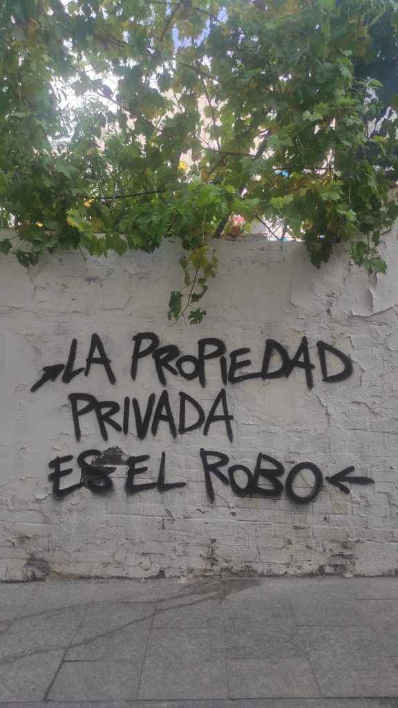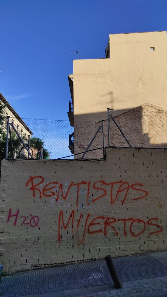 El Ayuntamiento borra en tiempo récord las pintadas aparecidas en Lavapiés en contra de la turistificación, las vut y «los rentistas»