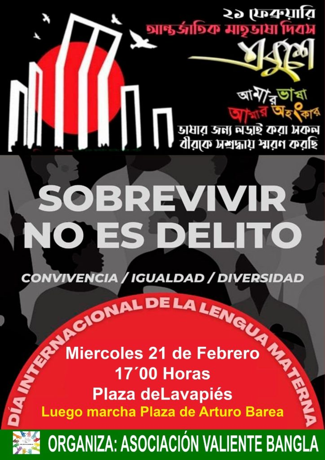 Como cada año, Valiente Bangla aprovecha este día para recordar la importancia de la existencia de cartelería en lugares municipales en las principales lenguas que se hablan y escuchan en Lavapiés, de la existencia de intérpretes de esos idiomas que puedan acompañar en trámites administrativos y en servicios de salud a vecinos con dificultades con el español y para reivindicar, una vez más, la regularización administrativa de las personas migrantes y su acceso universal a la sanidad pública, entre otras cuestiones.