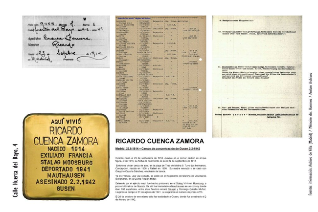 Durante la Segunda Guerra Mundial se cree que fueron entre 600 y 700 los vecinos de Madrid que acabaron en campos de concentración nazis, de un total de 9.000 españoles que sufrieron idéntica suerte. Muchos de los españoles que en el invierno de 1939 cruzaron los Pirineos huyendo de las represalias franquistas acabaron en campos de detención franceses y, luego, en campos de exterminio alemanes.