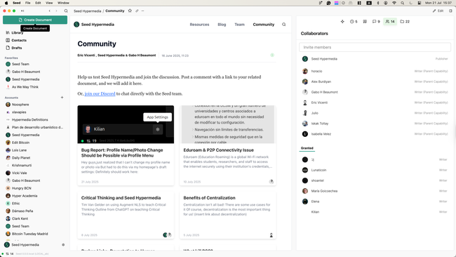 Seed Hypermedia Community Members have access to the whole community document