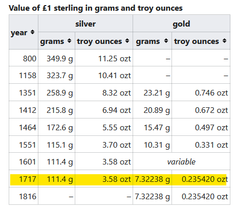 No se usó esta segunda opción hasta 1760 aunque sus notas siguieron siendo cambiadas por especie de facto.