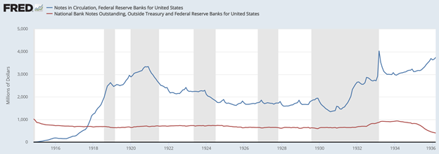 Es curioso que se diferencia a los Federal Reserve Bank Notes y a los Gold Certificates cuando 20 años antes, en el patrón oro clásico no debería existir diferencia entre ambos no?