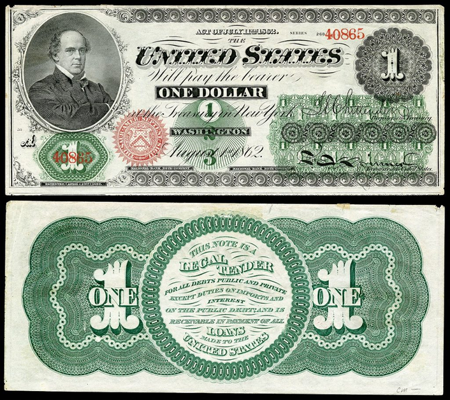 💵 Permitió la emisión de $150 millones de billetes nacionales (national notes) conocidos como "Greenbacks" y que obligaba a que fueran aceptados en lugar de monedas de oro y plata.