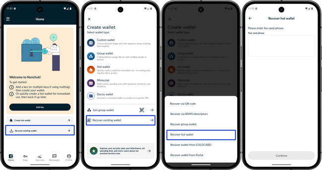 ⚠️ Si no has usado Nunchuk antes y no tienes nada más en esa billetera, borra la aplicación y practica cómo recuperarla: