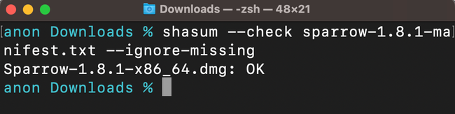 “shasum --check sparrow-1.8.1-manifest.txt –ignore-missing”