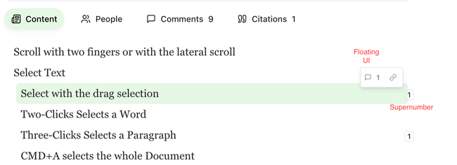 Why do we need both the Floating UI and the supernumber? Can't we combien them? At the time when the user hovers, can we just expand the supernumber UI with the additional features