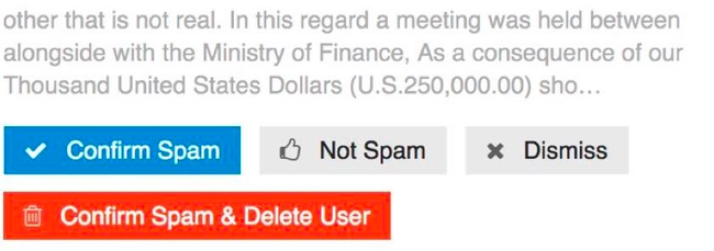 Built in Akismet spam protection and heuristics including new user sandboxing, user flag blocking, and standard nofollow.