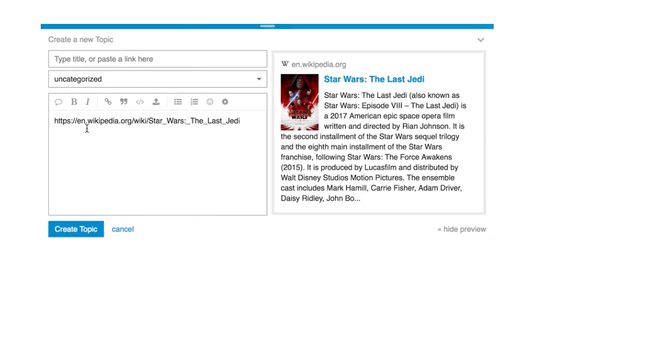 Want to share a cool link you found? Just paste it in on a single line and we’ll make it awesome. Links to Wikipedia, YouTube, Amazon, GitHub, Twitter, Flickr, and hundreds of other popular websites automatically expand to provide additional context and information.