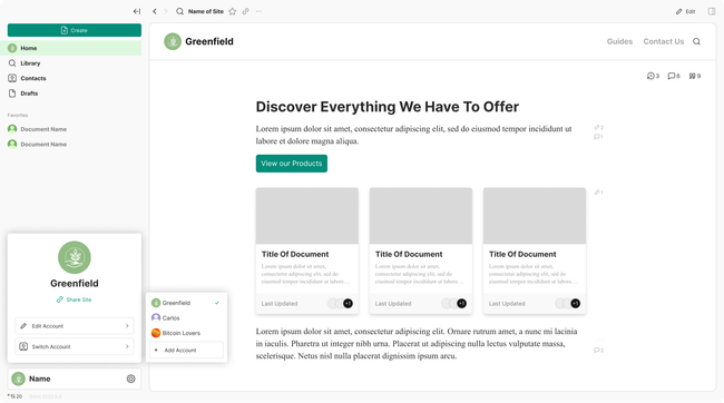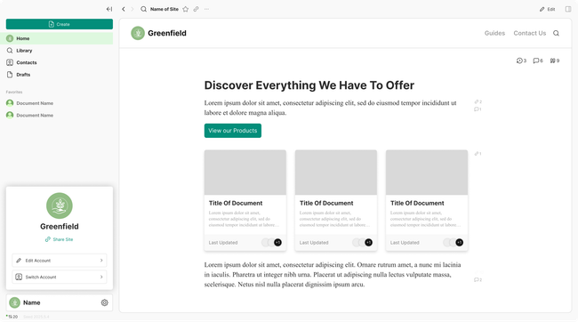 When clicking on the account picker a account card will be opened with resumed information on what you can do with your account like sharing your site, editing your account, and switching your account.