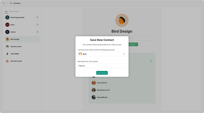 Additionally as contact will be contained in the contacts page, this one will show the contacts listed and when opened they will display the profile on full screen allowing users to use the bottom tabs once again to navigate back to the identities other views.