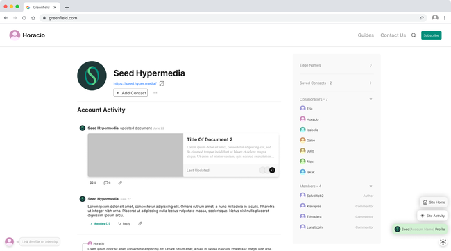 From here the user can easily navigate to the owner of the site's profile or feed, liberating the space form the the site navigation.