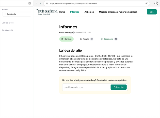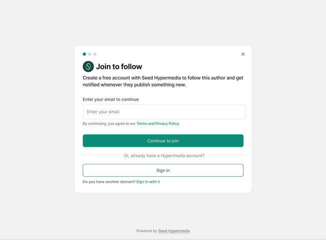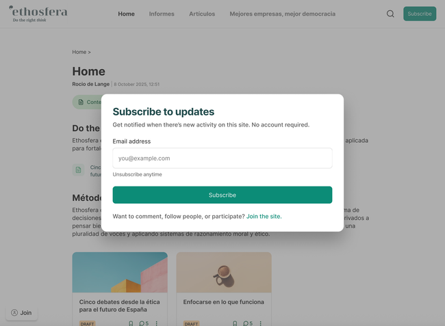 1.2. User reads and wants to subscribe. A window opens to add email and an option to join site instead. xxxxxx