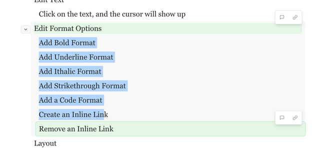 The formatting tool options and the block options menus overlap and neither is easy to find.