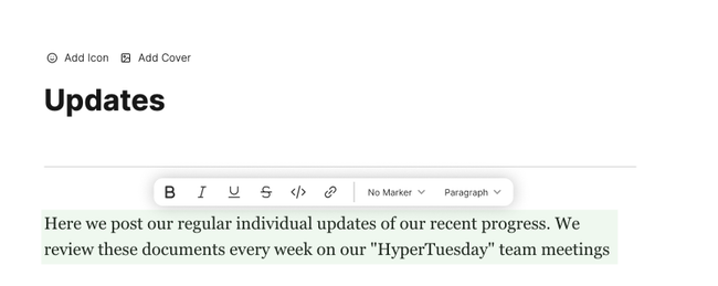 For mobile we can change the worded buttons to icon buttons and display this dropdown in the same interaction as we do the / Menu. (Notion was used as a reference for this)
