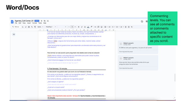 How comments are attached to different levels of content from whole page to specific content.