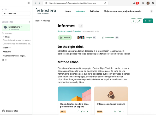 In this scenario, you’ve been invited by a colleague to a tool, to edit and create content on a site she is working on called Ethosphera which is about politics.