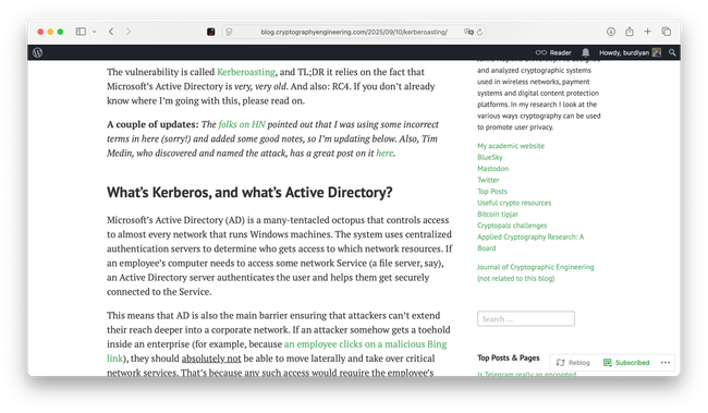 Wordpress top bar with current account