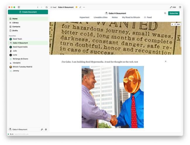 The whole thing feels all over the place. We have a footer with an Open in App button, which nobody uses, because it's never on the screen basically. We have the top green bar when serving third-party content saying "Hosted on ... via the Hypermedia Protocol". Plus we have the account state on the bottom left.