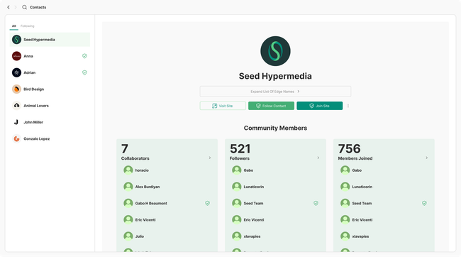 “We need a new entity in the system that enables users to share their profiles and store contacts in a way that lets them create a ‘web of trust’ (Horacio & Alex on Linear).”