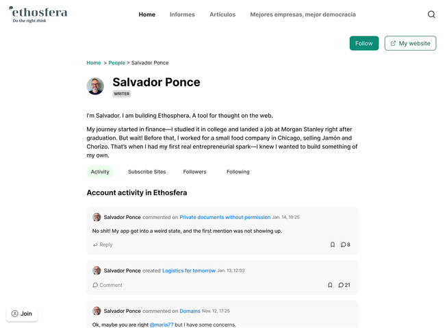 We will add a field on the Contact which describes if the user is following the account activity or is joined to the site.