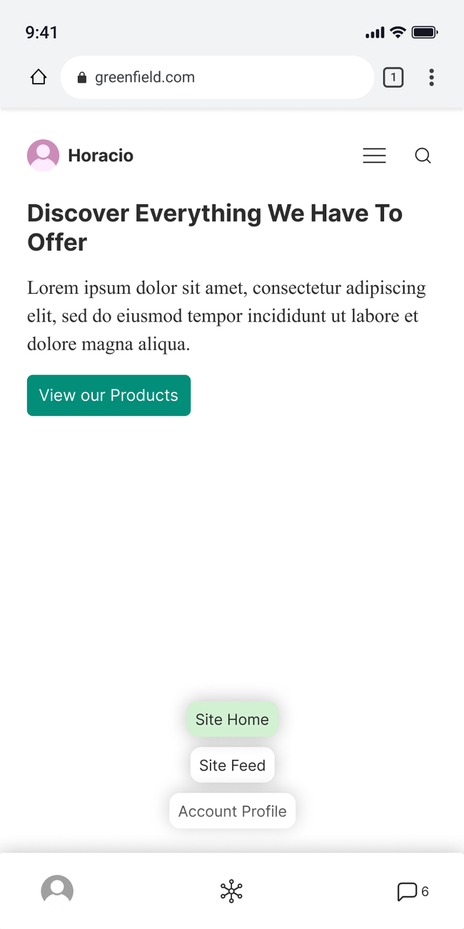 From here the user can easily navigate to the owner of the site's profile or feed, liberating the space form the the site navigation.