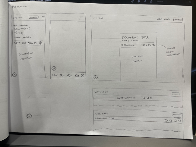 what we can also do (to stay consistent with mobile) is that after the buttons below the title are not visible, we show a sticky bar below the site header. This will make those buttons accessible across the whole document length.