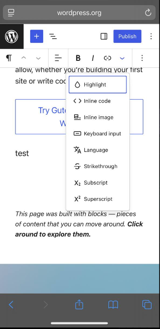 This creates a frustrating experience when trying to format or insert content on mobile.
