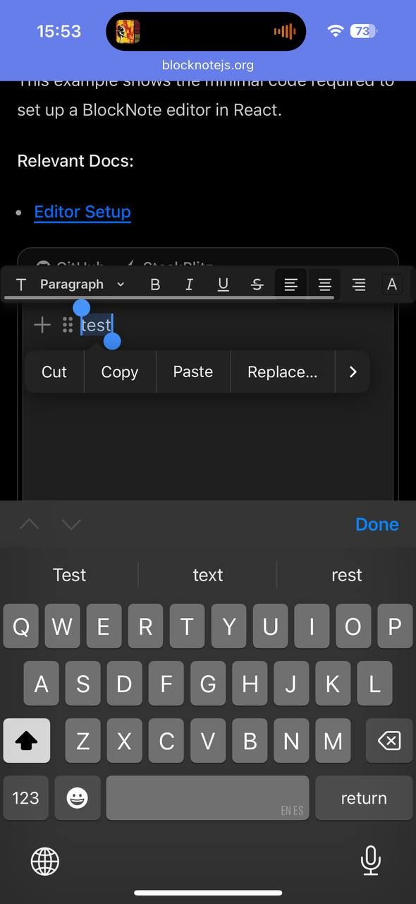 On mobile, the current floating formatting toolbar is partly hidden and trying to click on its' buttons completely hides it. Also, the slash menu is also broken. It's transparent and all over the place, making it hard to click the necessary block type.