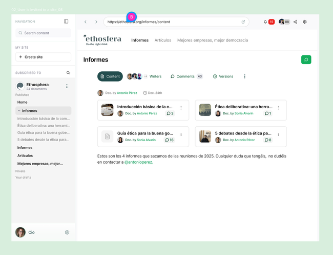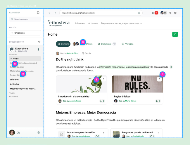 When clicking the copy link or share button in the titlebar, we copy either the normal document URL (show the content) or a document + fragment if any content fragment (or blockID) is highlighted.