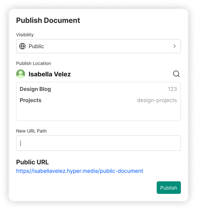 This designs follow the proposal for the project Private Documents: Phase 1 This means private document status will be decided when creating a document and they will not be children of any other document. Initially there status wont be able to change.