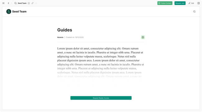 Private documents will show a bit of information and will have a button to request access to became a private reader.