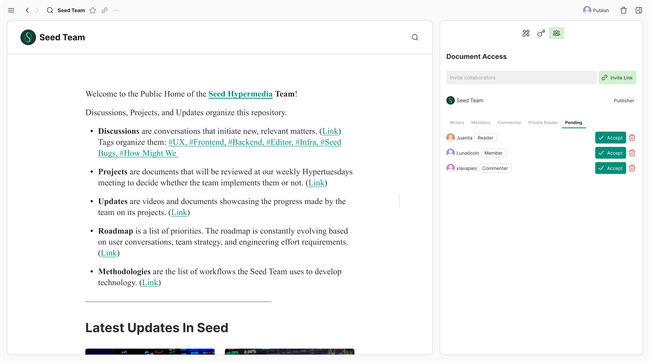 Allowing Reader Permission will be done though the Document access panel in the pending tab. There will also be a new tab for those users that have been granted the role of a private reader.