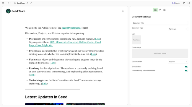 The state of private for a document will be a document property of each independent document. This will be able to be changed on the document settings panel.