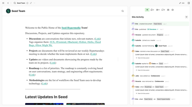 The All activity / feed will have new elements (each item is defined on the feed item document)