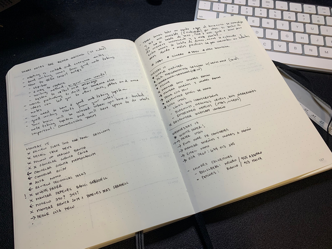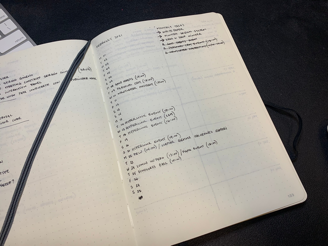 I've tried a bunch of techniques and processes, but maybe I kept using Bullet Journal because it's very simple and customizable, and I was doing it with my wife too (both separate BuJos). I think the results of using BuJo by yourself are very clear from the start, but syncing activities with someone else makes the experience much more exciting and adictive for us. We were like a f****ng swiss watch!.